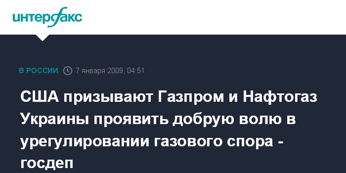 США призывают Газпром и Нафтогаз Украины проявить добрую волю в урегулировании газового спора - госдеп