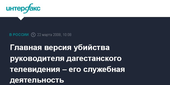 Москва. 22 марта. ИНТЕРФАКС - Следствие по делу об убийстве руководителя дагестанского телевидения Магомедгаджи Абашилова в качестве основной версии рассматривает убийство, совершенное в связи с его служебной деятельностью.