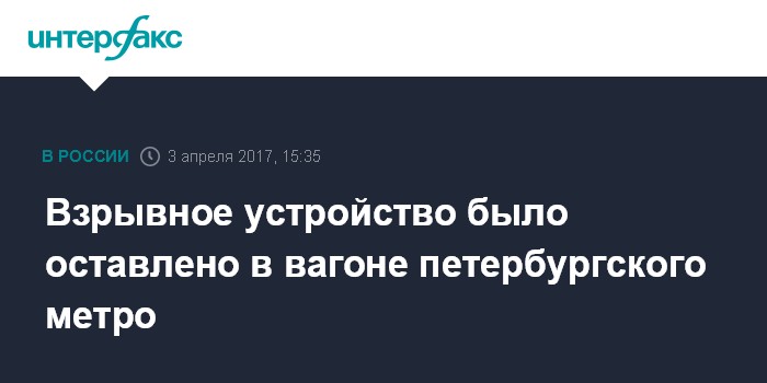 "По предварительным данным, взрыв в санкт-петербургском метро осуществил не террорист-смертник. Самодельное взрывное устройство, скорее всего, было оставлено в вагоне перед отправлением состава", - сказал собеседник агентства.