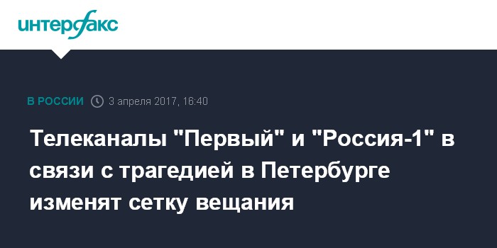 Москва. 3 апреля. INTERFAX.RU - Телеканал "Россия-1" (ВГТРК) изменил сетку вещания в связи с трагедией, произошедшей в Санкт-Петербургском метро.