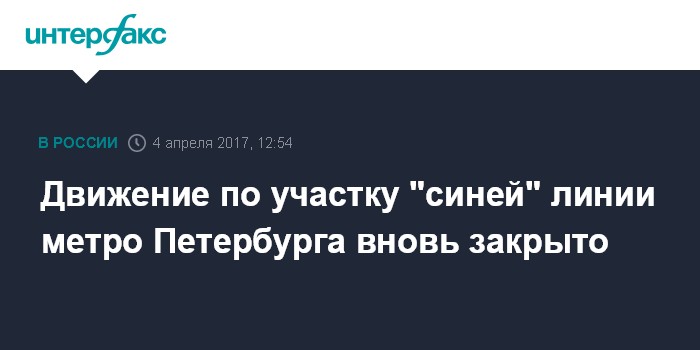 Москва. 4 апреля. INTERFAX.RU - В Петербурге закрыто движение по участку "синей" линии метрополитена, где накануне произошел теракт.