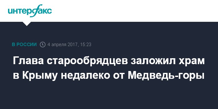 Москва. 4 апреля. INTERFAX.RU - Предстоятель Русской православной старообрядческой церкви митрополит Корнилий совершил молебен по случаю закладки храма в Крыму.