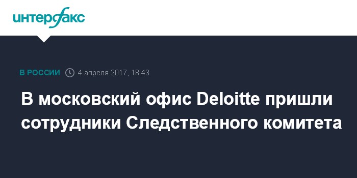 Источник, знакомый с ситуацией, сообщил "Интерфаксу", что следователи начали работу в офисе Deloitte на Лесной улице во вторник в первой половине дня. Комментарии СКР получить пока не удалось.