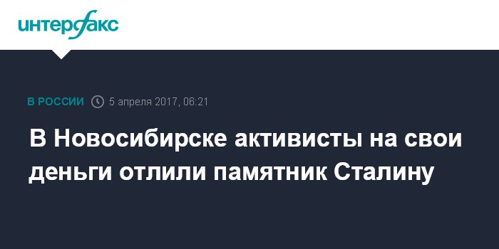Москва. 5 апреля. INTERFAX.RU - Бюст Иосифа Сталина готов к установке в Новосибирске, но мэрия затягивает решение вопроса с его размещением, сообщает в среду инициативная группа по установке памятника "вождю народов".