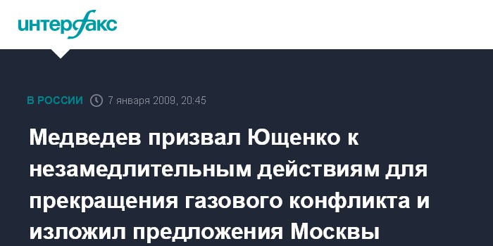 Медведев призвал Ющенко к незамедлительным действиям для прекращения газового конфликта и изложил предложения Москвы
