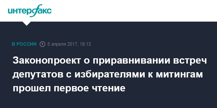 Законопроект о приравнивании встреч депутатов с избирателями к митингам прошел первое чтение