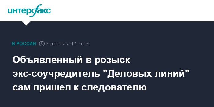 Объявленный в розыск экс-соучредитель "Деловых линий" сам пришел к следователю