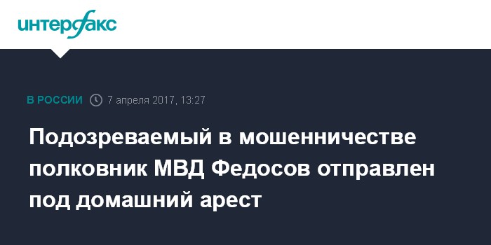Подозреваемый в мошенничестве полковник МВД Федосов отправлен под домашний арест