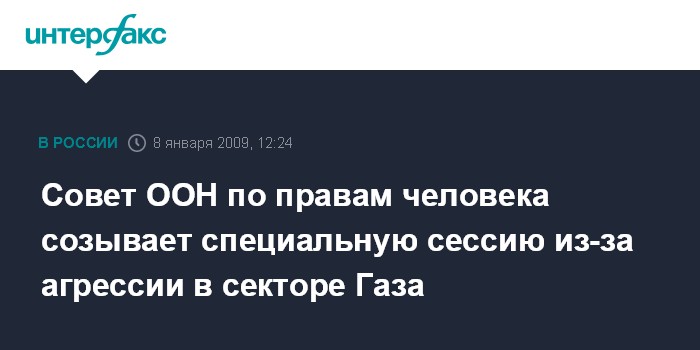 Нью-Йорк (ООН). 8 января. INTERFAX.RU - Совет ООН по правам человека проведет в пятницу специальную чрезвычайную сессию, посвященную ситуации в секторе Газа.