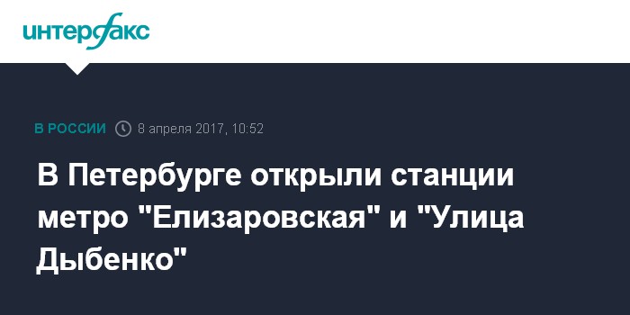 Москва. 8 апреля. INTERFAX.RU - В Петербурге после проверки была открыта станция метро "Елизаровская", говорится в сообщении пресс-службы городского метрополитена в Телеграмме.