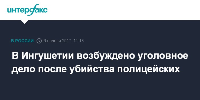 Москва. 8 апреля. INTERFAX.RU - Следователи возбудили уголовное дело по факту убийства двух полицейских в ингушском Малгобеке, сообщили "Интерфаксу" в пресс-службе следственного управления СКР по региону в субботу.