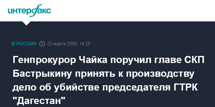 Генпрокурор Чайка поручил главе СКП Бастрыкину принять к производству дело об убийстве председателя ГТРК "Дагестан"