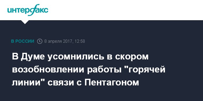 В Думе усомнились в скором возобновлении работы "горячей линии" связи с Пентагоном