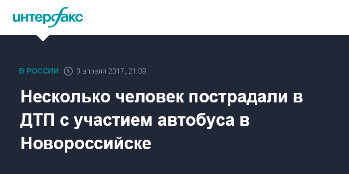 "ДТП произошло сегодня в городе Новороссийск. По предварительным данным, в автобусе находилось не более 20 человек. Несколько из них получили травмы", - сказал собеседник агентства.