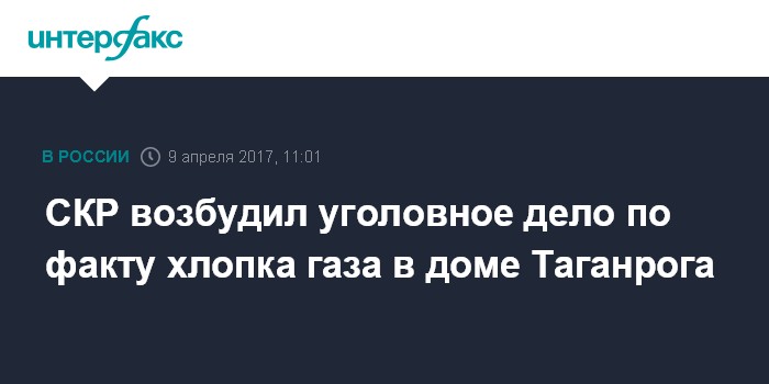 Москва. 9 апреля. INTERFAX.RU - Следственное управление СК РФ по Ростовской области возбудило уголовное дело по факту хлопка газа в многоквартирном доме Таганрога, в результате которого два человека погибли и два пострадали, сообщила "Интерфаксу" официальный представитель ведомства Галина Гагалаева.