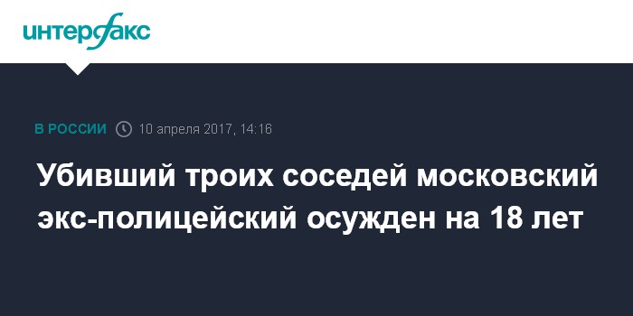Убивший троих соседей московский экс-полицейский осужден на 18 лет