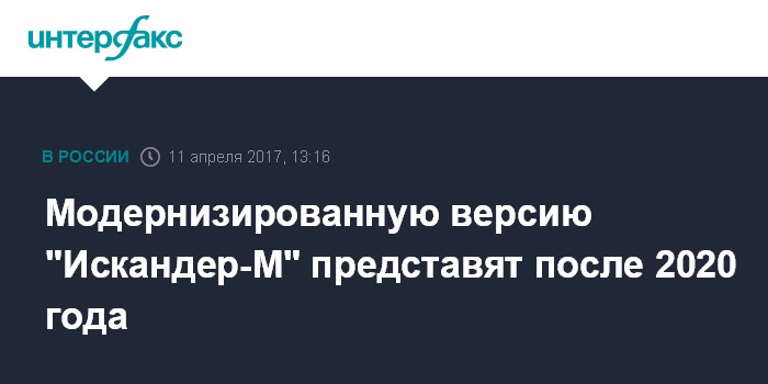 Москва. 11 апреля. INTERFAX.RU - Конструкторское бюро машиностроения (КБМ) ведет работы по модернизации оперативно-тактического ракетного комплекса "Искандер-М", сообщил глава госкорпорации "Ростех" Сергей Чемезов, которого цитирует пресс-служба компании. Модернизированная версия будет представлена после 2020 года, сказал Чемезов.