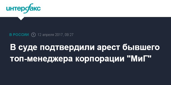 В суде подтвердили арест бывшего топ-менеджера корпорации "МиГ"