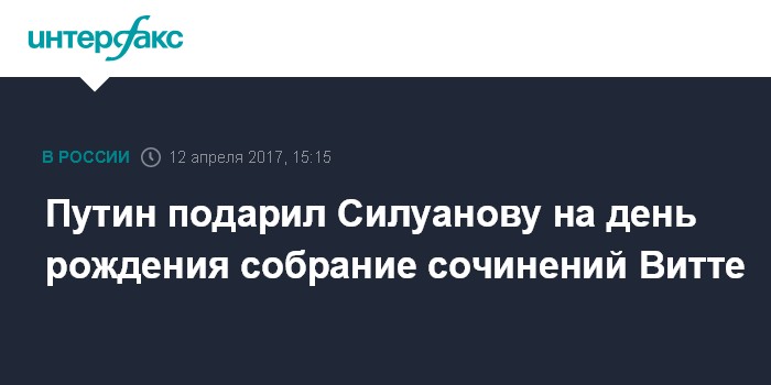 Путин подарил Силуанову на день рождения собрание сочинений Витте