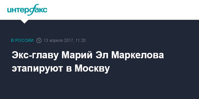 Москва. 13 апреля. INTERFAX.RU - Экс-губернатора Марий Эл Леонида Маркелова в ближайшее время этапируют в Москву, сообщил "Интерфаксу" адвокат Игорь Трунов.