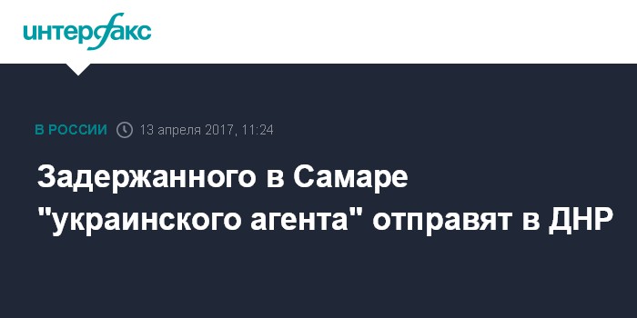 Как сообщил собеседник агентства, задержанный в Самаре агент будет затем депортирован в ДНР, где им займутся местные следователи. "Сейчас его отправят в ДНР, формально - на Украину, по сути - не совсем на Украину, чтобы там местные следователи с ним разбирались: просто ли он смотрел расположение воинских частей или, может быть, был наводчиком огня", - сказал источник.