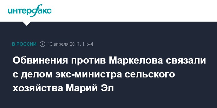 Обвинения против Маркелова связали с делом экс-министра сельского хозяйства Марий Эл