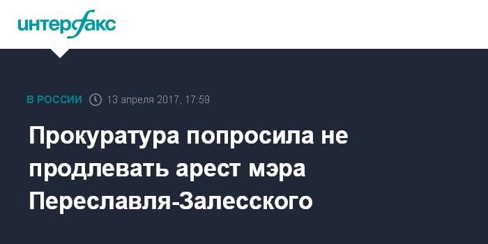 Москва. 13 апреля. INTERFAX.RU - Прокуратура возражает против продления ареста мэра Переславля-Залесского Дениса Кошурникова, обвиняемого в превышении должностных полномочий, передает корреспондент "Интерфакса".