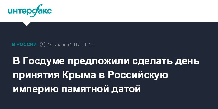 В Госдуме предложили сделать день принятия Крыма в Российскую империю памятной датой