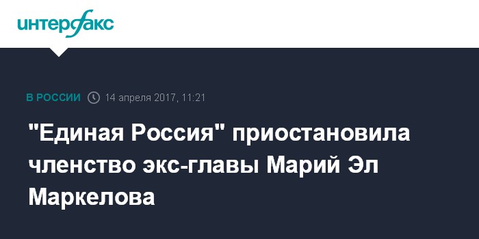 "Единая Россия" приостановила членство экс-главы Марий Эл Маркелова