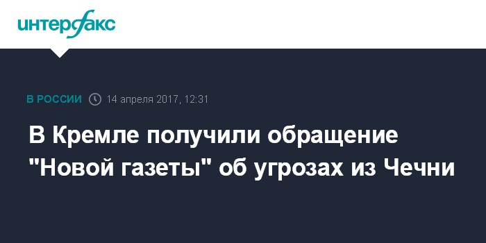В Кремле получили обращение "Новой газеты" об угрозах из Чечни