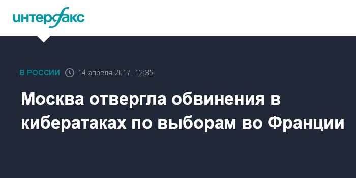 Москва. 14 апреля. INTERFAX.RU - В администрации президента России отвергли обвинения в кибератаках с целью оказать влияние на президентские выборы во Франции.