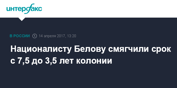 Националисту Белову смягчили срок с 7,5 до 3,5 лет колонии