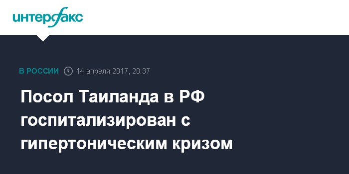 Посол Таиланда в РФ госпитализирован с гипертоническим кризом