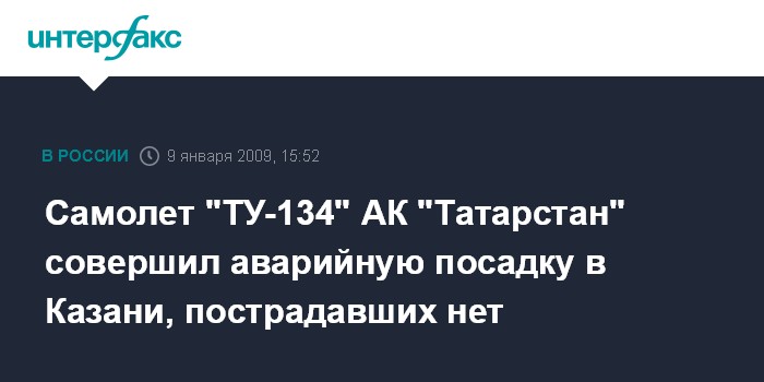 Самолет "ТУ-134" АК "Татарстан" совершил аварийную посадку в Казани, пострадавших нет