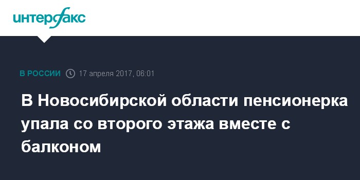 Москва. 17 апреля. INTERFAX.RU - Следственные органы СКР по Новосибирской области проводят доследственную проверку по факту обрушения балкона с находившейся на нем пожилой женщиной в селе Лебедевка Искитимского района, сообщает в понедельник следственное управление.