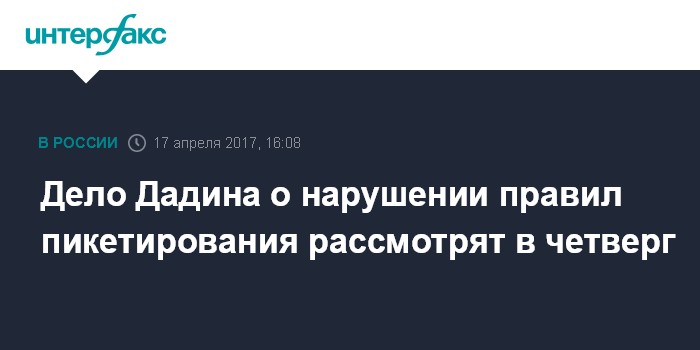 Москва. 17 апреля. INTERFAX.RU - Тверской суд Москвы отложил на 20 апреля рассмотрение административного дела оппозиционного активиста Ильдара Дадина, обвиняемого в нарушении правил пикетирования, передает корреспондент "Интерфакса".