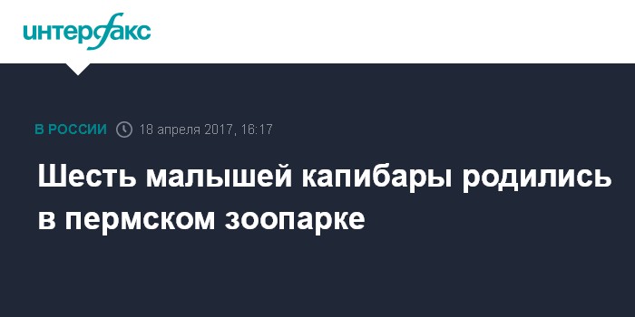 Москва. 18 апреля. INTERFAX.RU - Пополнение в семействе капибаров произошло в пермском зоопарке, сообщила "Интерфаксу" ученый секретарь учреждения Елена Бурдина во вторник.