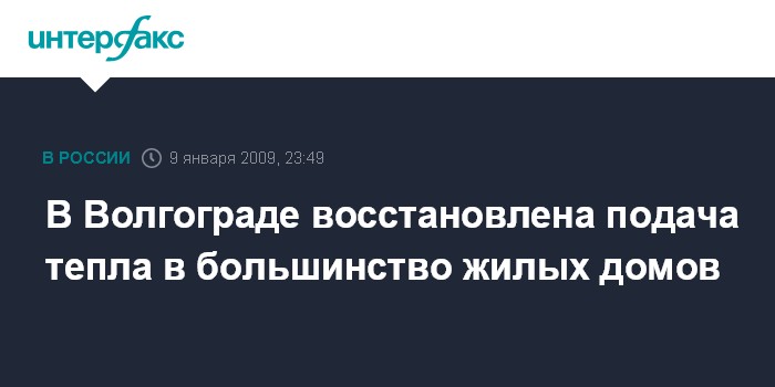Между тем руководитель пресс-службы ОАО "Коммунальные технологии Волгограда" Татьяна Дмитриева сообщила агентству, что "по данным на 23:00 мск. теплоноситель стал поступать в 187 жилых домов".