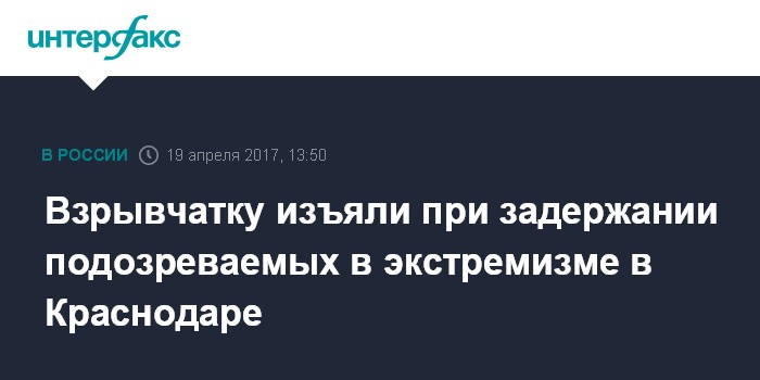 Москва. 19 апреля. INTERFAX.RU - Компоненты взрывного устройства обнаружены в квартире в Краснодаре при задержании подозреваемых в экстремизме.