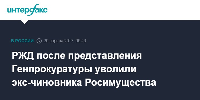 РЖД после представления Генпрокуратуры уволили экс-чиновника Росимущества