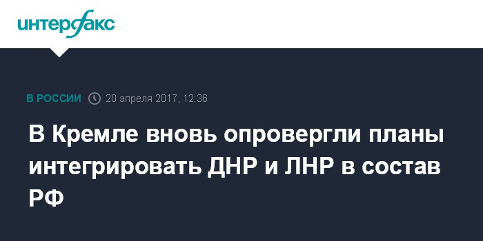 В Кремле вновь опровергли планы интегрировать ДНР и ЛНР в состав РФ