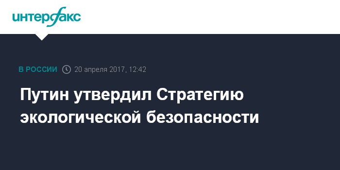 Москва. 20 апреля. INTERFAX.RU - Президент РФ Владимир Путин свои указом утвердил Стратегию экологической безопасности РФ на период до 2025 года.