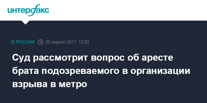 Суд рассмотрит вопрос об аресте брата подозреваемого в организации взрыва в метро
