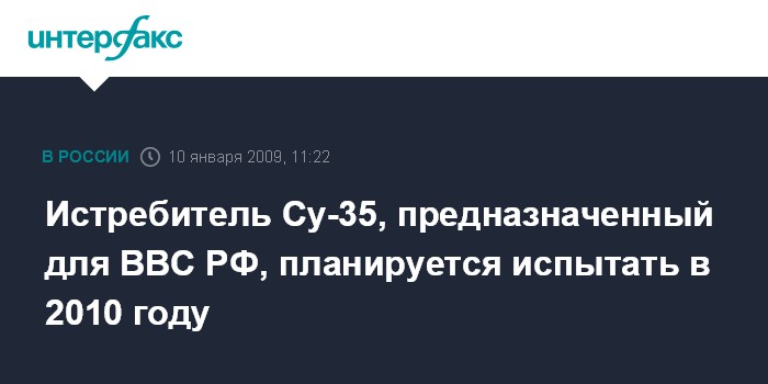 "Примерно в середине 2010 года планируется вывести на летные испытания перспективный истребитель Су-35 в комплектации для российских ВВС", - сказал И.Демин.