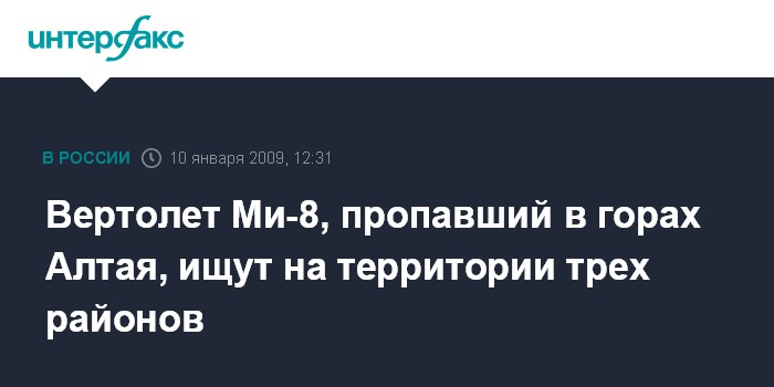Горно-Алтайск. 10 января. INTERFAX.RU - Поиски вертолета Ми-8, пропавшего в пятницу в Республике Алтай, будут продолжаться до наступления темноты.