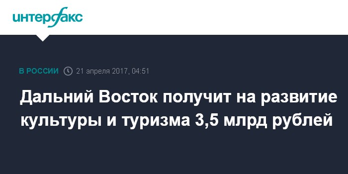 Дальний Восток получит на развитие культуры и туризма 3,5 млрд рублей