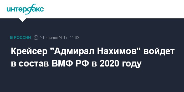 Москва. 21 апреля. INTERFAX.RU - ВМФ России получит тяжелый атомный ракетный крейсер (ТАРК) "Адмирал Нахимов" в обновленном состоянии через несколько лет, сообщил главком ВМФ Владимир Королев.