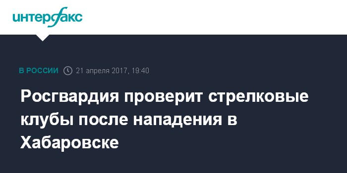 Москва. 21 апреля. INTERFAX.RU - Национальная гвардия проведет внеплановые проверки стрелковых клубов после нападения на управление ФСБ по Хабаровскому краю, сообщили "Интерфаксу" в пятницу в департаменте по взаимодействию со СМИ Росгвардии.