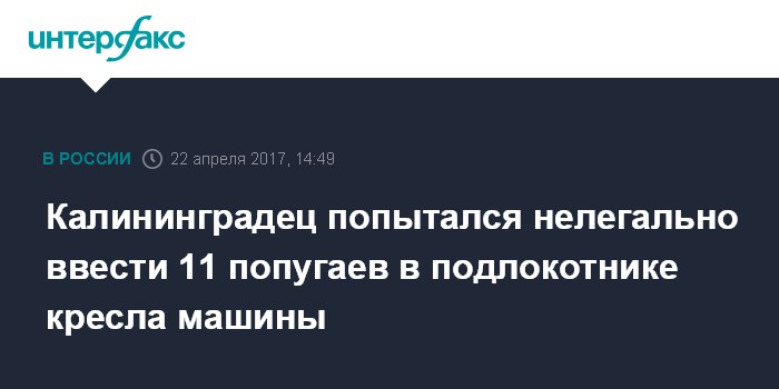 Москва. 22 апреля. INTERFAX.RU - Калининградская таможня пресекла попытку нелегального ввоза в регион одиннадцати попугаев, спрятанных в подлокотник автомобиля.