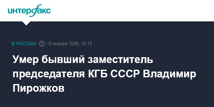 Умер бывший заместитель председателя КГБ СССР Владимир Пирожков